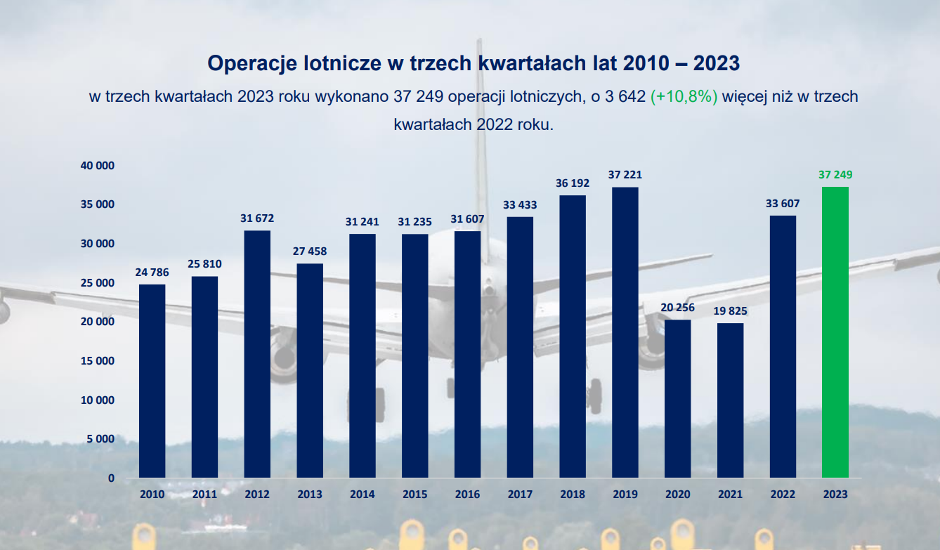 Od stycznia do końca września 2023 roku w Gdańsku było 37 249 operacji lotniczych, o 10,8% więcej niż w porównywalnym okresie ubiegłego roku.