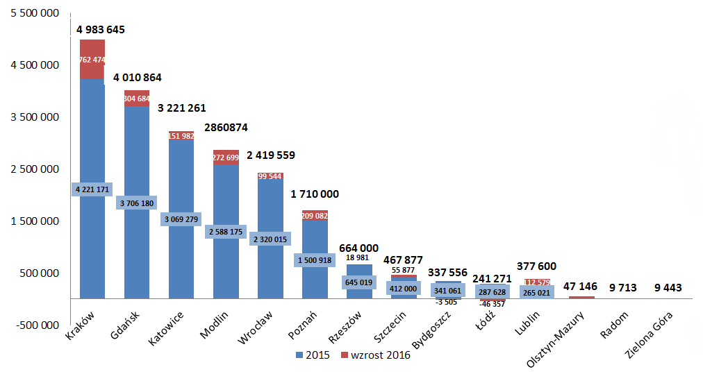 „Zgodnie ze wstępnymi danymi finansowymi, w 2016 roku osiągnęliśmy zysk netto na poziomie niemal 24 milionów złotych, co jest wartością zbliżoną do wyniku z zeszłego roku. Pamiętajmy jednak, że jako lotnisko finansujemy nie tylko sami swoją działalność, ale jednocześnie spłacamy nasze zobowiązania finansowe zaciągnięte na potrzebę spłaty naszego największego w historii programu inwestycyjnego. Warto zwrócić uwagę na wskaźnik EBITDA, czyli nasz wynik operacyjny powiększony o wysokość amortyzacji.” – komentuje Prezes Kloskowski.
