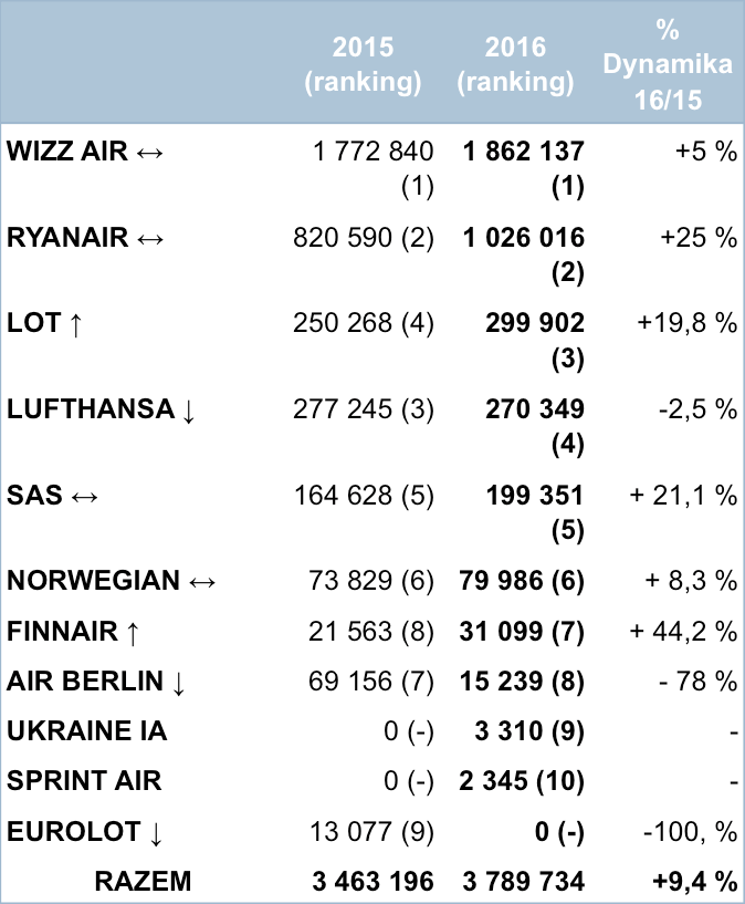 Tak wysoki wynik liczby obsłużonych pasażerów możliwy był między innymi dzięki wzrostom na połączeniach krajowych oraz nowym połączeniom i zwiększeniu częstotliwości na dotychczasowych połączeniach zagranicznych. Tę dodatnią dynamikę zawdzięczamy zarówno przewoźników niskokosztowych, jak i tradycyjnych.