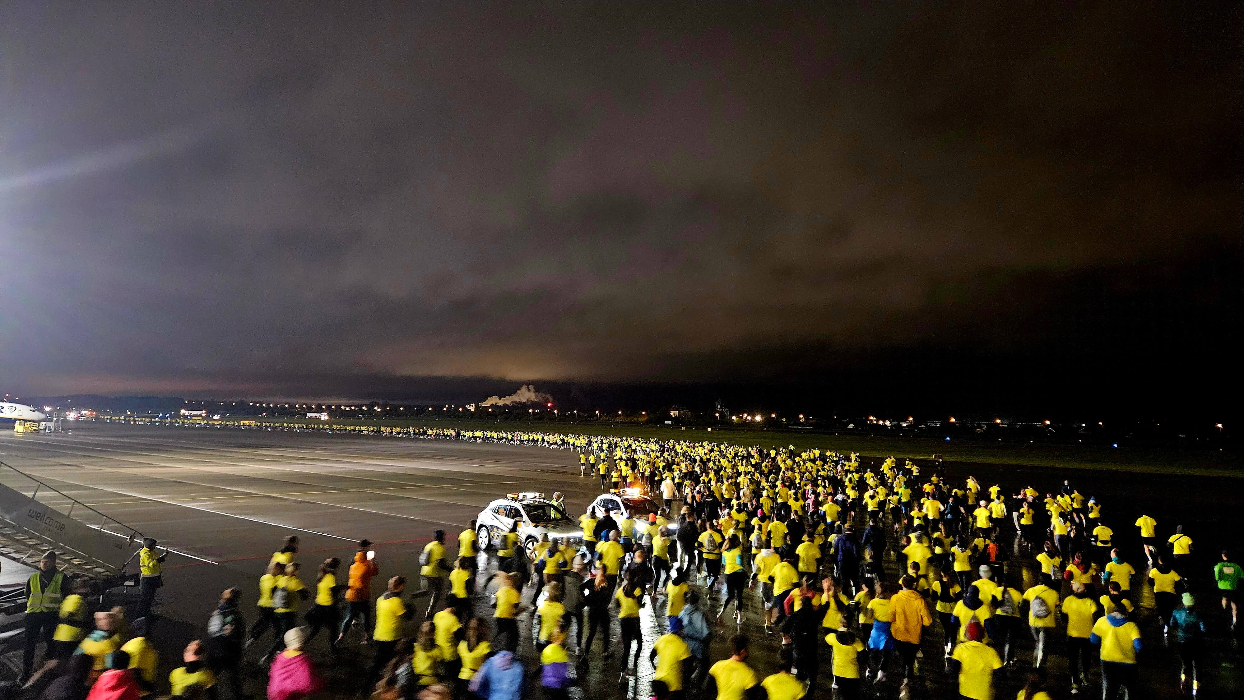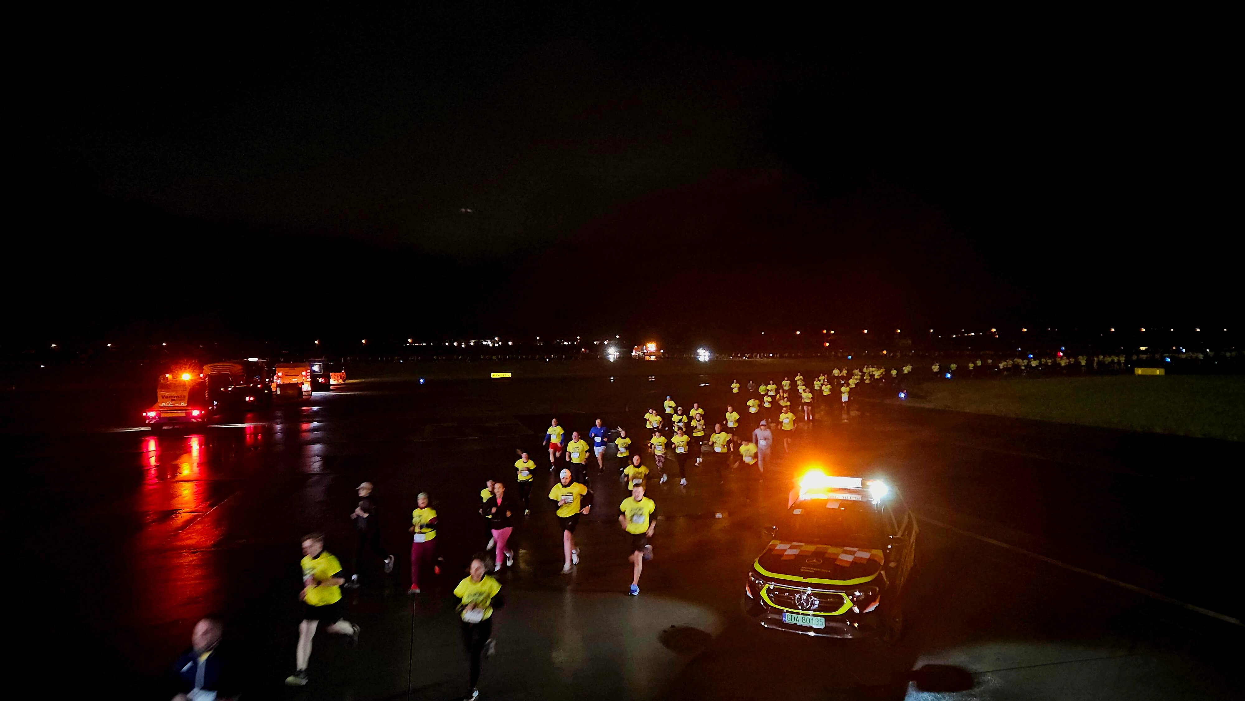 Nocny bieg po drodze startowej gdańskiego lotniska.