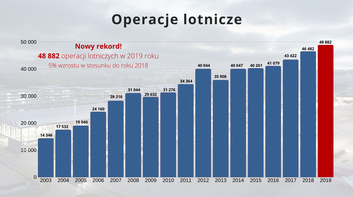 W 2019 roku z gdańskiego lotniska samoloty wykonały w sumie 48.882 operacji startów i lądowań, najwięcej w historii firmy.