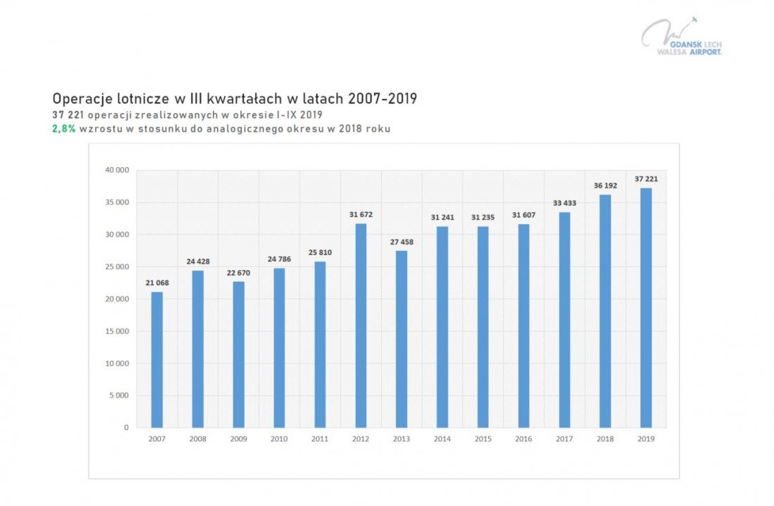 W porównaniu do tego samego okresu 2018, w tym roku mamy 2,8 % wzrost liczby połączeń lotniczych.