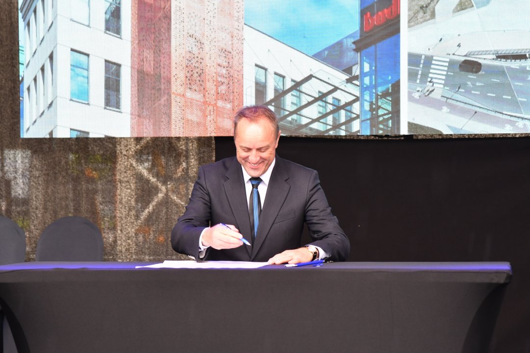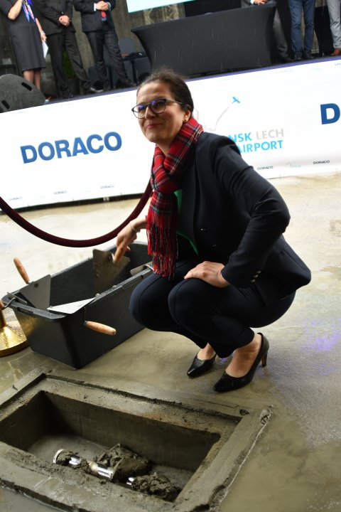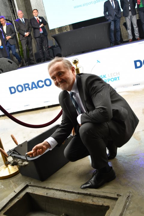 W uroczystości udział wzięli, akt erekcyjny podpisali i wmurowali kamień węgielny: Marszałek Województwa Pomorskiego Mieczysław Struk, Prezydent Gdańska Aleksandra Dulkiewicz, Prezydent Gdyni Wojciech Szczurek, Prezydent Sopotu Jacek Karnowski, Piotr Szymański z Przedsiębiorstwa Państwowego Porty Lotnicze, Prezes Korporacji Budowlanej DORACO Karol Zduńczyk i Prezes Portu Lotniczego Gdańsk Tomasz Kloskowski.