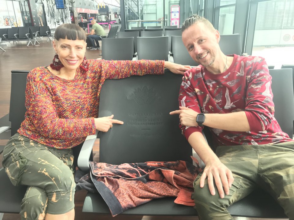 Oparcia krzeseł w motywami kaszubskimi zaprojektowali i wykonali znani w Trójmieście projektanci Jola Słoma i Mirek Trymbulak. „Kaszubszczyzna fascynuje nas od jakiegoś czasu. Dlatego chętnie zaprojektowaliśmy te motywy dla lotniska”- mówi Mirek Trymbulak. Para projektantów przygotowała już wcześniej swoją kolekcję mody inspirowaną kaszubszczyzną. Zobacz TUTAJ