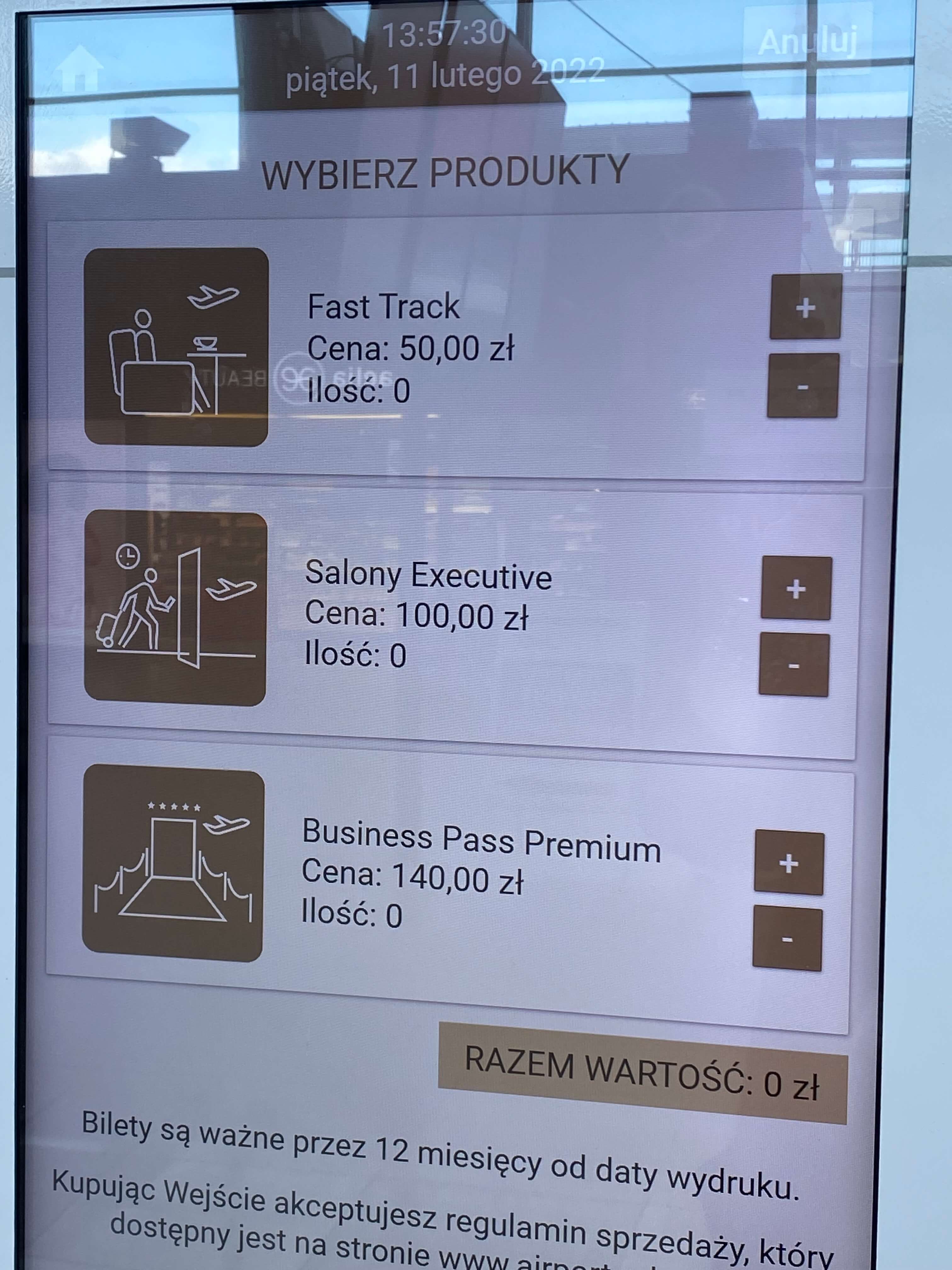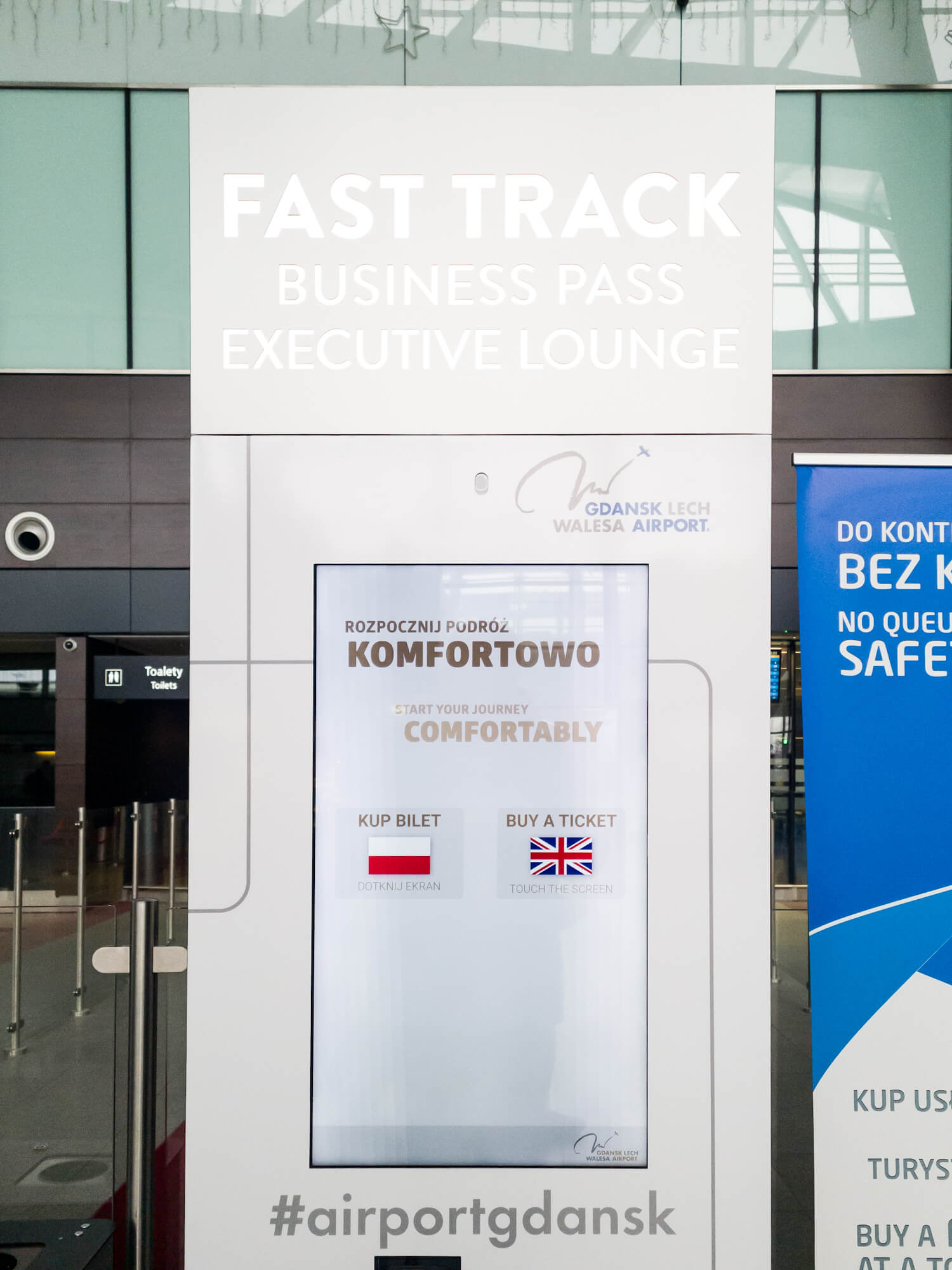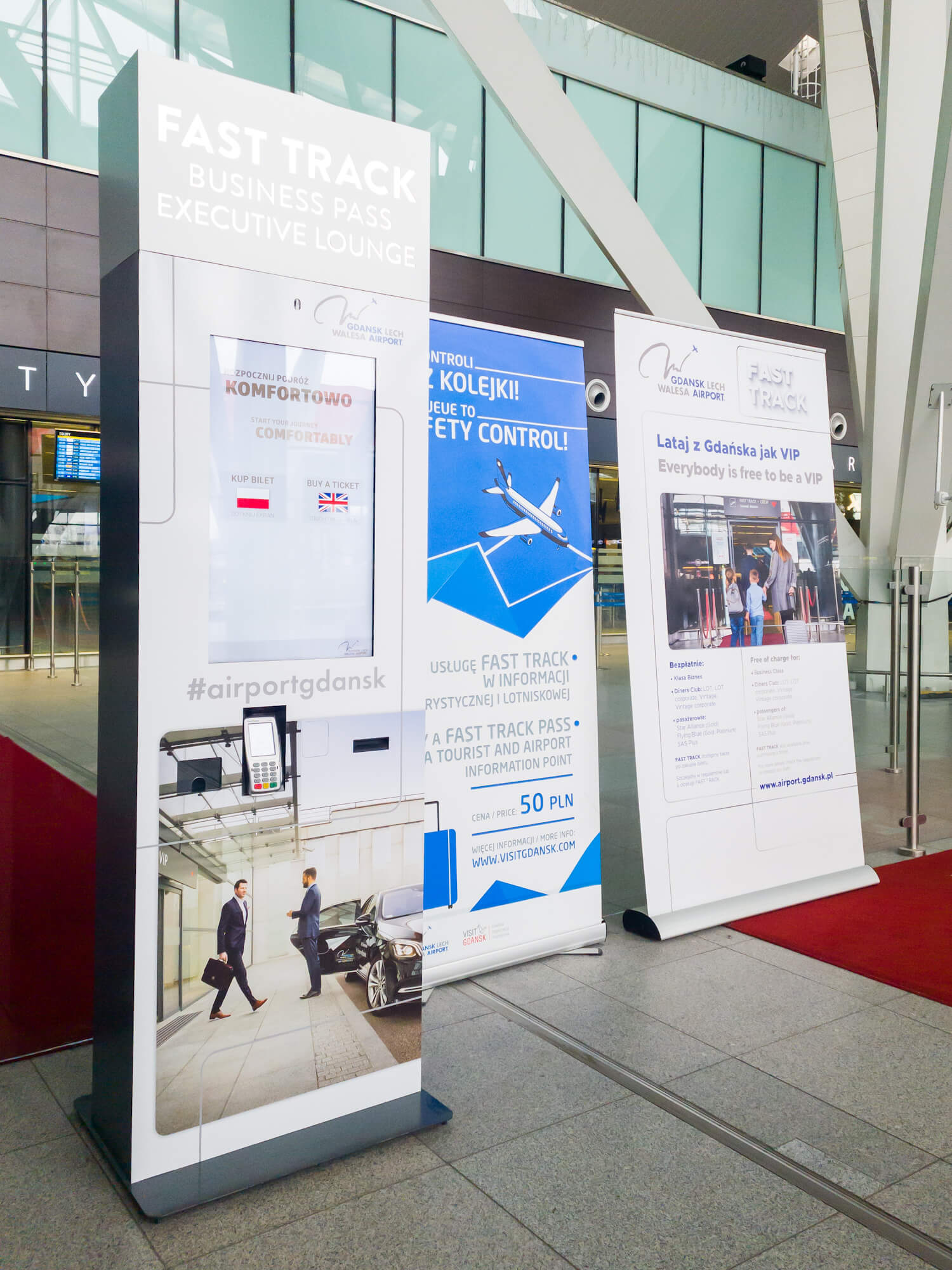 Uruchomiliśmy specjalny automat do sprzedaży kart Fast Track, czyli usługi szybkiego przejścia przez kontrolę bezpieczeństwa lub kart do wejścia do salonu Executive Lounge. Można też kupić obie usługi razem, czyli tzw. Business Pass. Urządzenie jest proste w obsłudze i przyjmuje płatności kartami płatniczymi. Automat mieści się w terminalu pasażerskim, koło bramek, gdzie skanuje się karty boardingowe, przed wejściem do kontroli bezpieczeństwa.