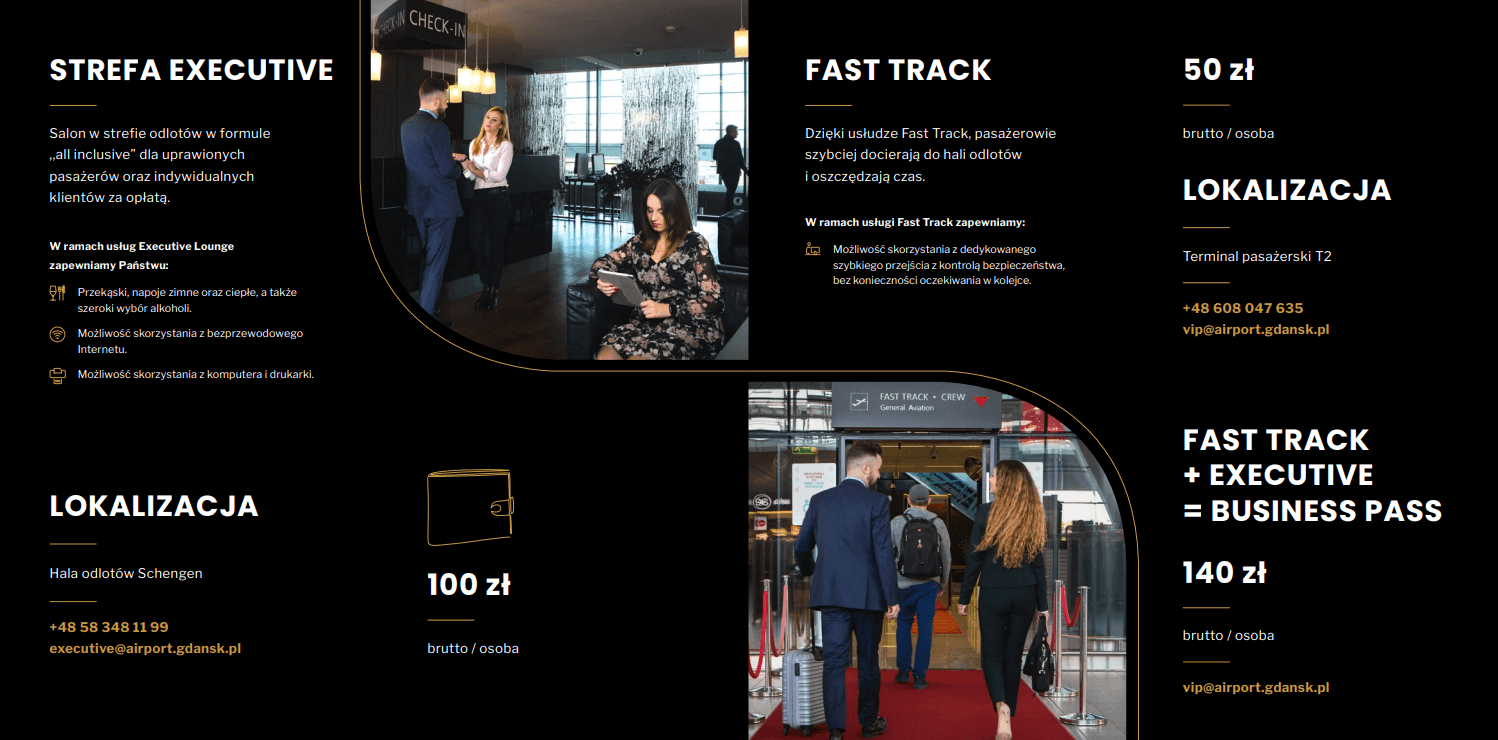 Usługi Fast Track i Executive Lounge w Porcie Lotniczym Gdańsk, oprócz zakupu w automacie, można nadal zamawiać wypełniając odpowiedni formularz na stronie lotniska https://www.airport.gdansk.pl/vip/ lub wysyłając wiadomość na adres email: vip@aiport.gdansk.pl.