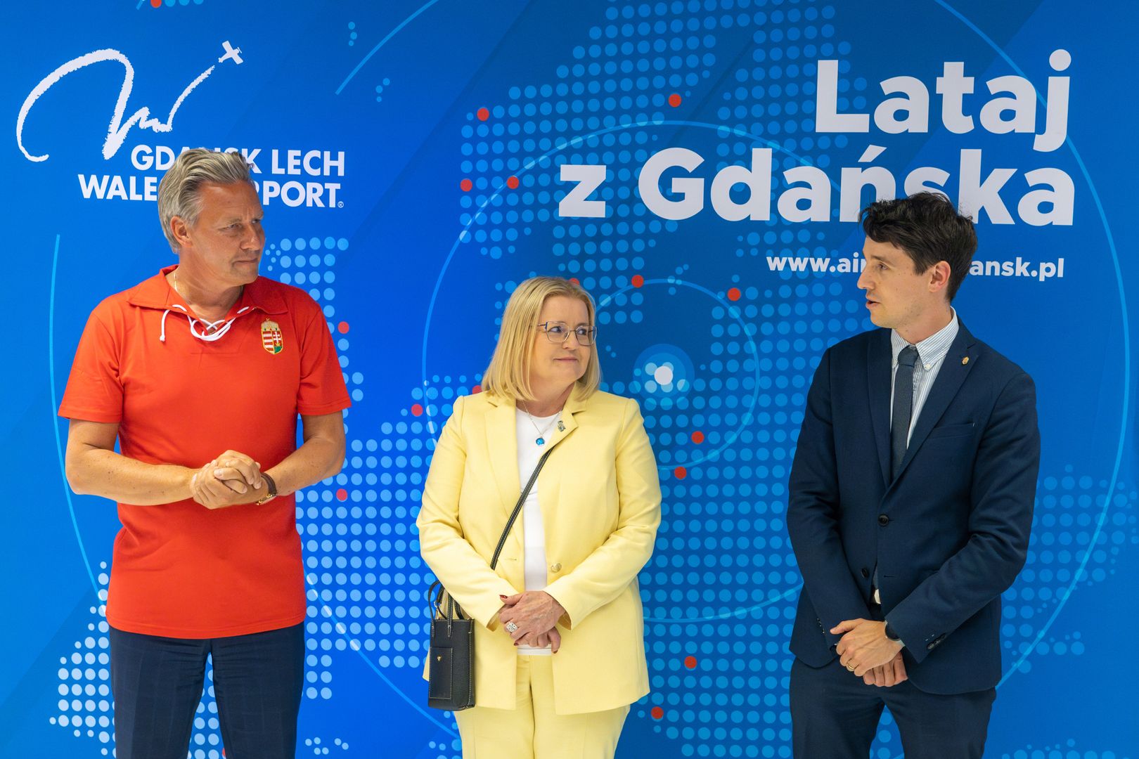 W briefingu wzięli udział: Péter Nándor Kertész Konsul Generalny Węgier w Gdańsku, Agnieszka Baranowska Członkini Zarządu Województwa Pomorskiego oraz Tomasz Kloskowski Prezes Portu Lotniczego Gdańsk im. Lecha Wałęsy.