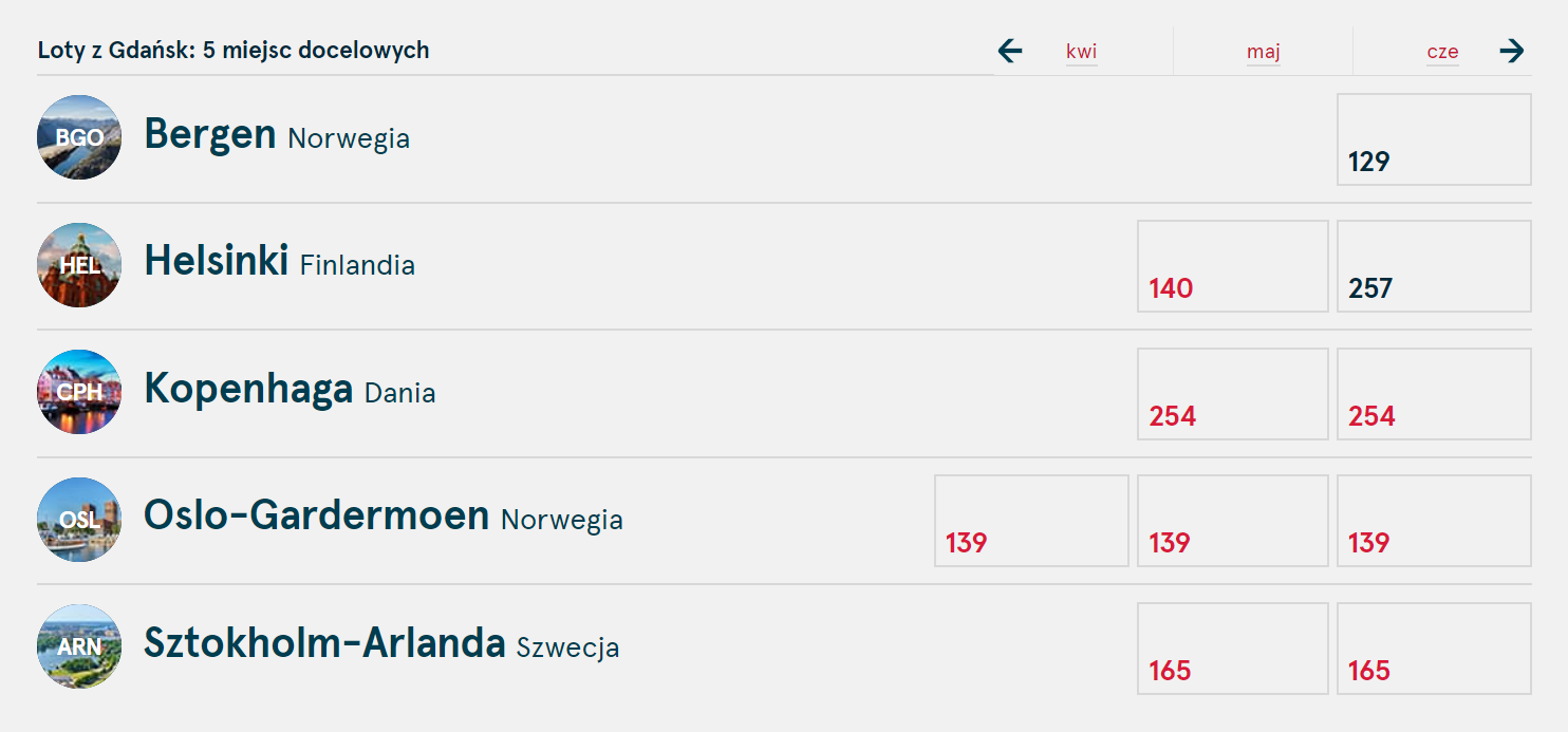 Nowa oferta norweskich linii powiększy się wiosną 2022 roku. Do połączeń realizowanych obecnie z Gdańska na lotnisko Oslo-Gardermoen, w maju dołączą trzy nowe loty, 1 maja do Kopenhagi (dwa razy w tygodniu, w czwartki i niedziele). 2 maja Norwegian wystartuje z lotami z Gdańska do Sztokholmu, na lotnisko Arlanda (dwa razy w tygodniu, w poniedziałki i piątki) oraz do Helsinek (dwa razy w tygodniu, także w poniedziałki i piątki). Natomiast od 3 czerwca 2022 norweski przewoźnik będzie latał na trasie z Gdańska do norweskiego Bergen (dwa razy w tygodniu, w poniedziałki i piątki). Bilety na nowe wiosenne połączenia są już do kupienia w systemie rezerwacyjnym linii lotniczej.