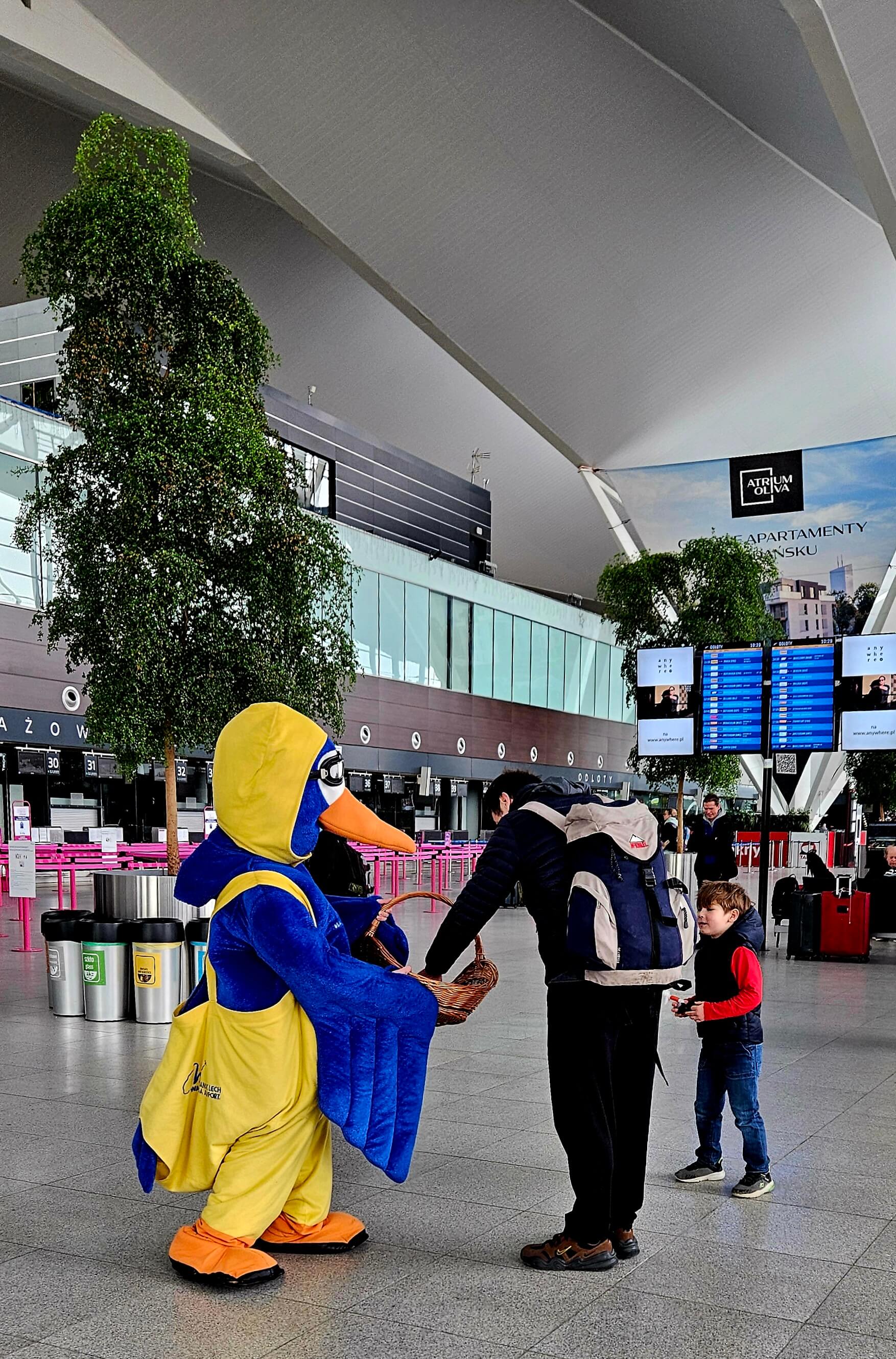Była nasza maskotka Airnest, która częstowała pasażerów okolicznościowymi babeczkami, upieczonymi z okazji 50-lecia lotniska.