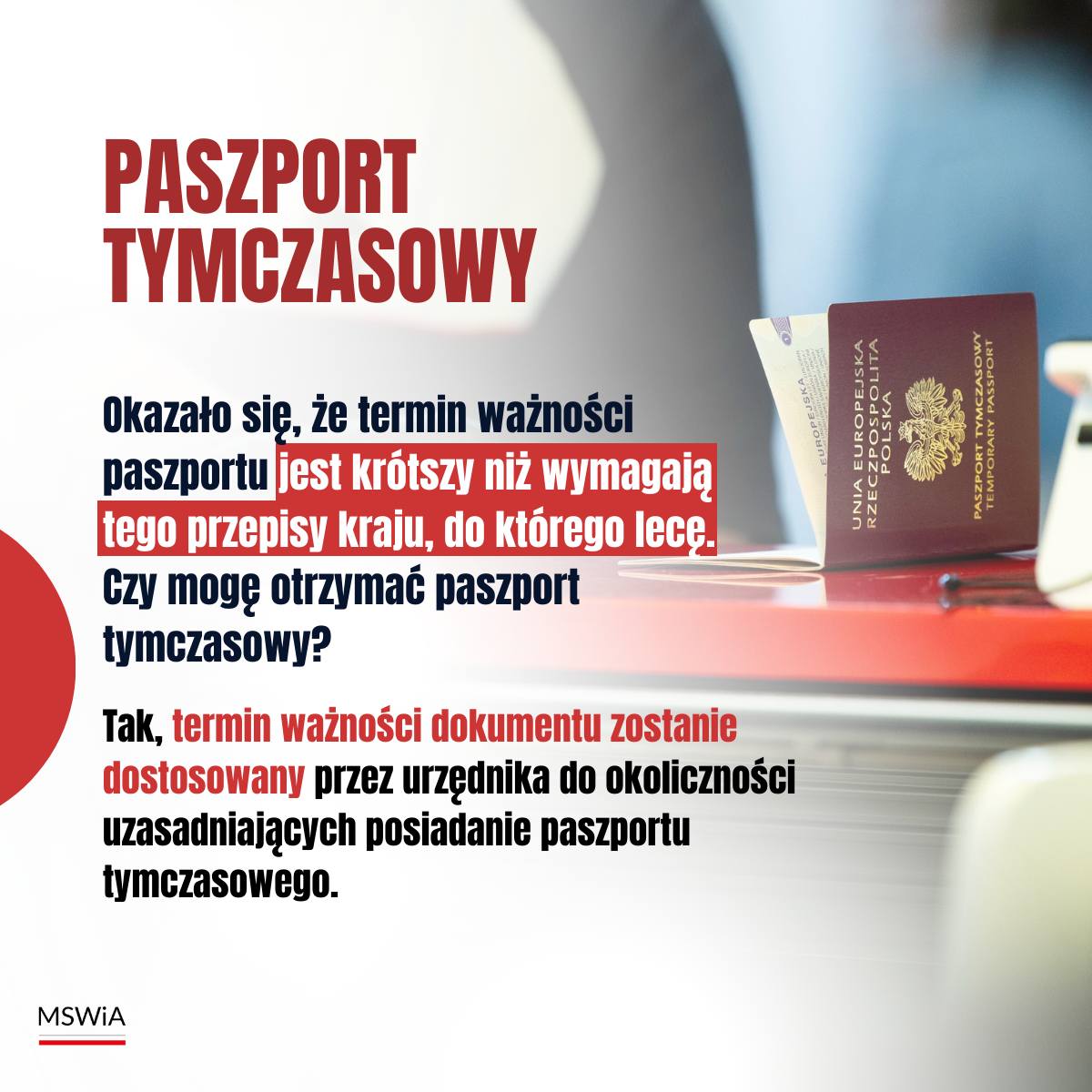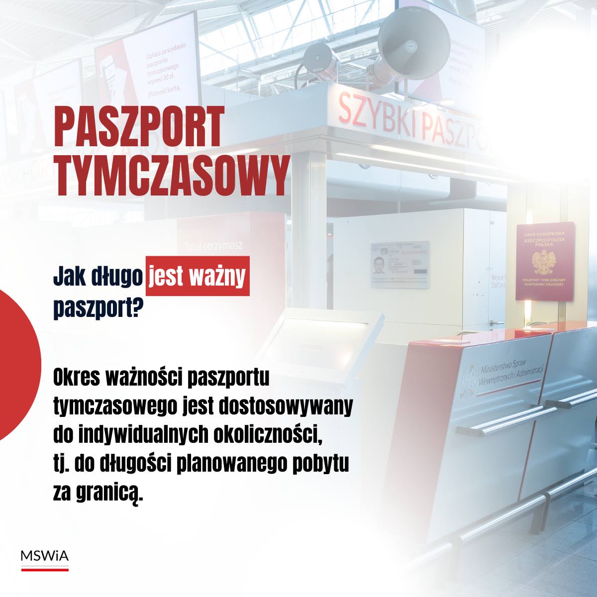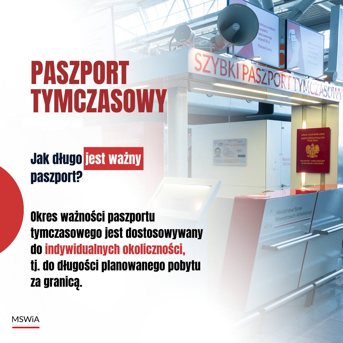 Paszport tymczasowy jest ważny przez okres w nim wskazany, zazwyczaj tyle, ile trwa planowana podróż, nie dłużej niż 12 miesięcy od daty jego otrzymania.