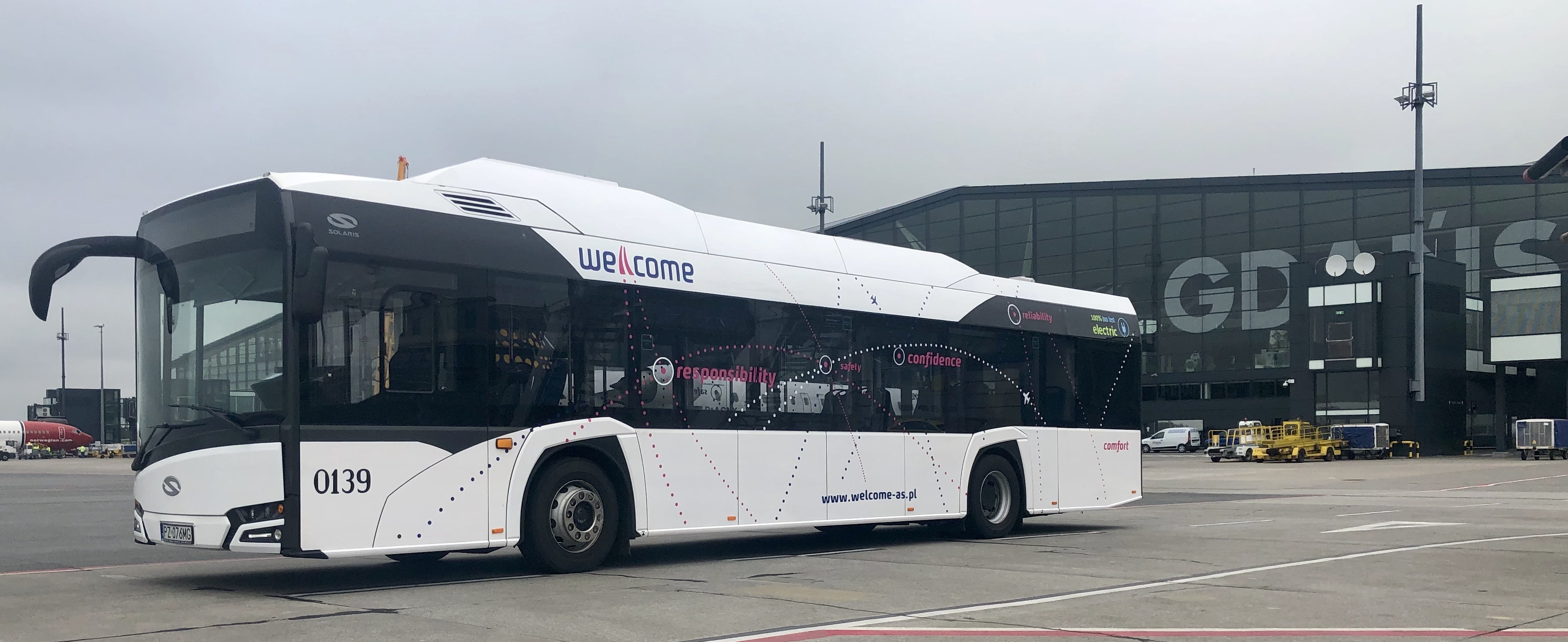 W Porcie Lotniczym Gdańsk pasażerów wozi nowoczesny i ekologiczny Solaris Urbino 12 electric. Zakupiła go firma Welcome Airport Services, agent handlingowy, obsługujący pasażerów linii lotniczych. To pierwszy tego typu ekologiczny autobus na lotnisku w Polsce.