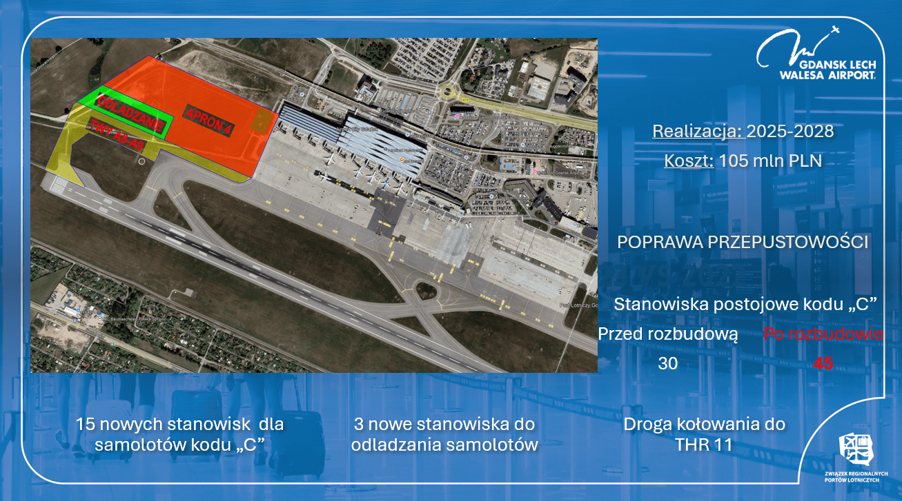 W 2025 roku gdańskie lotnisko rozpocznie projektowanie nowej płyty postojowej. Będzie ona zawierała 15 nowych stanowisk dla samolotów. Docelowo będzie ich 45. W ramach inwestycji powstaną także trzy nowe stanowiska do odladzania samolotów oraz część drogi kołowania samolotów do progu 11. Inwestycja ta wpłynie na zwiększenie przepustowości i poprawę pracy lotniska. Zostanie zrealizowana do 2028 roku, kosztem 105 milionów złotych. 20 marca 2025 roku Port Lotniczy Gdańsk ogłosił przetarg na „Kompleksowe wykonanie dokumentacji projektowej wraz z uzyskaniem prawomocnego pozwolenia na budowę płyty postojowej samolotów PPS4/4A”.