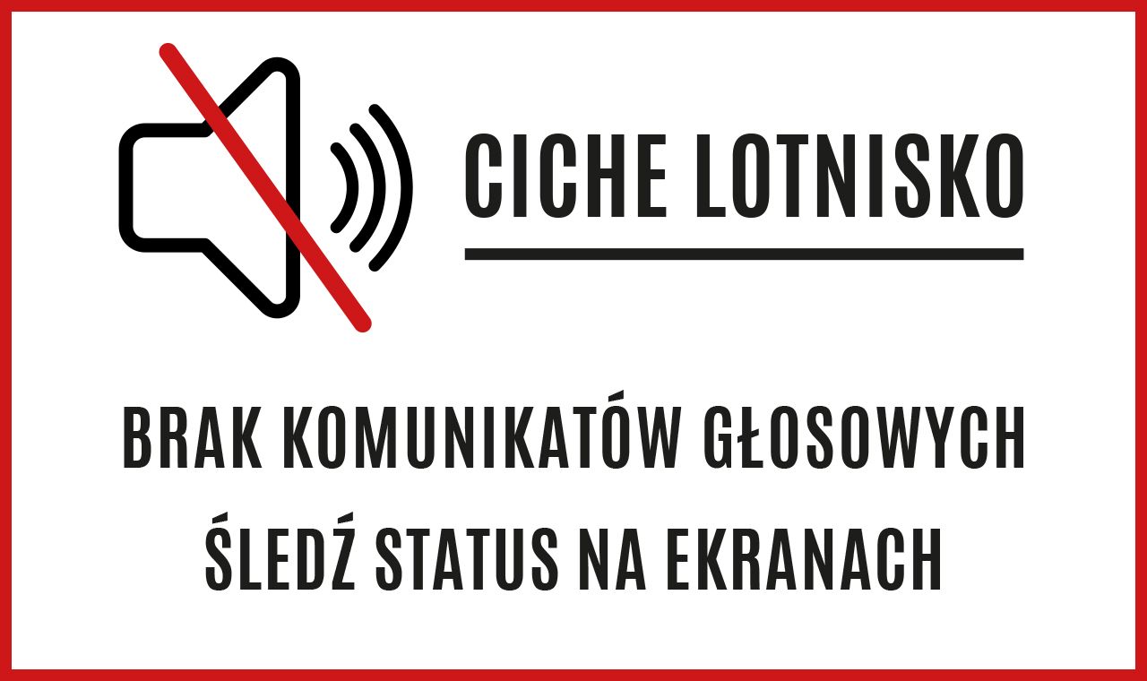 W trosce o komfort pasażerów w styczniu 2025 roku planujemy wyłączyć większość komunikatów emitowanych z głośników w terminalu pasażerskim. Zalecamy, by śledzić informacje o lotach na tablicach i ekranach.
