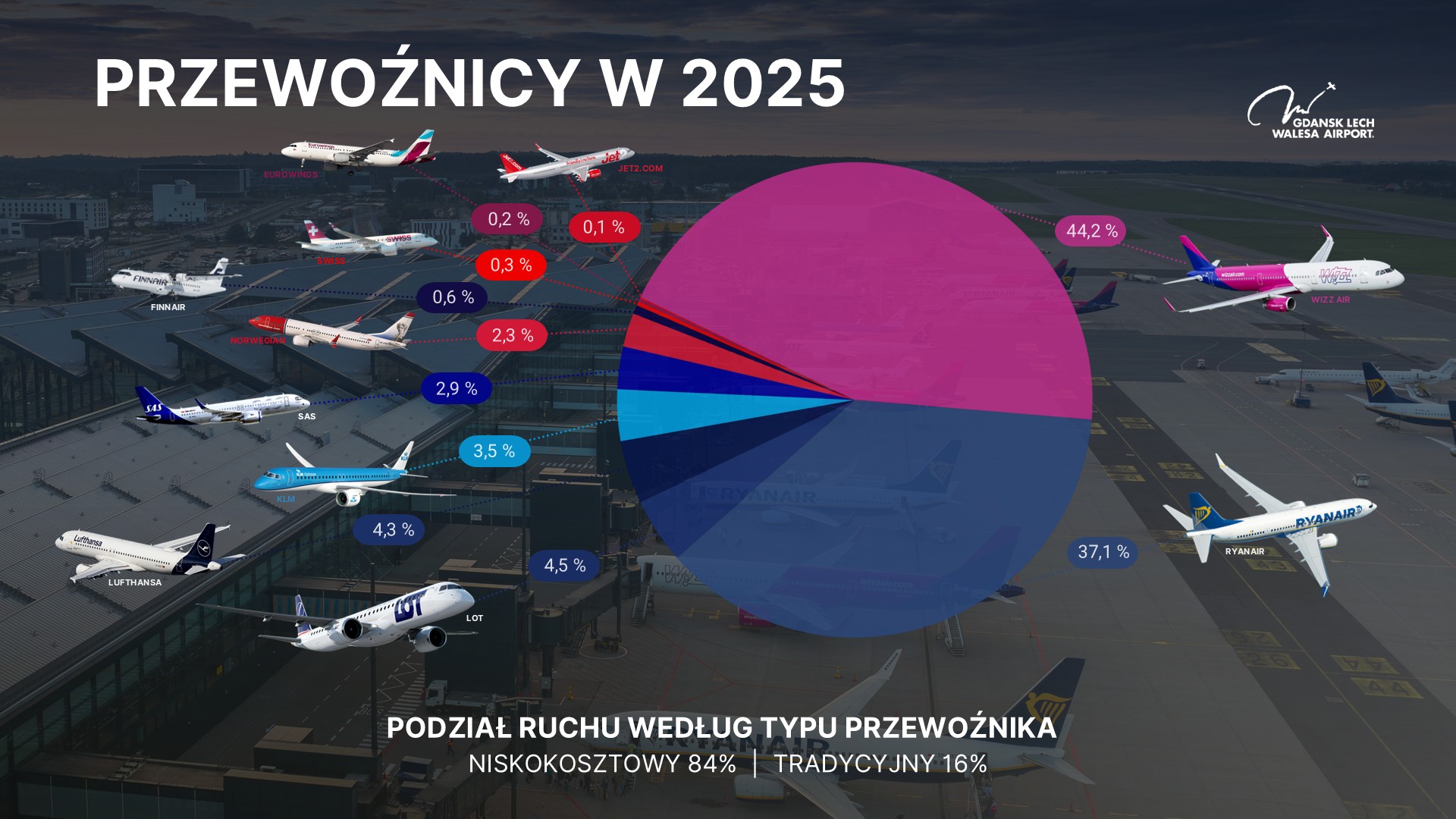 Port Lotniczy Gdańsk im. Lecha Wałęsy jest największym lotniskiem w północnej Polsce, trzecim co do liczby obsługiwanych pasażerów w kraju i jednym z najszybciej rozwijających się portów regionalnych.