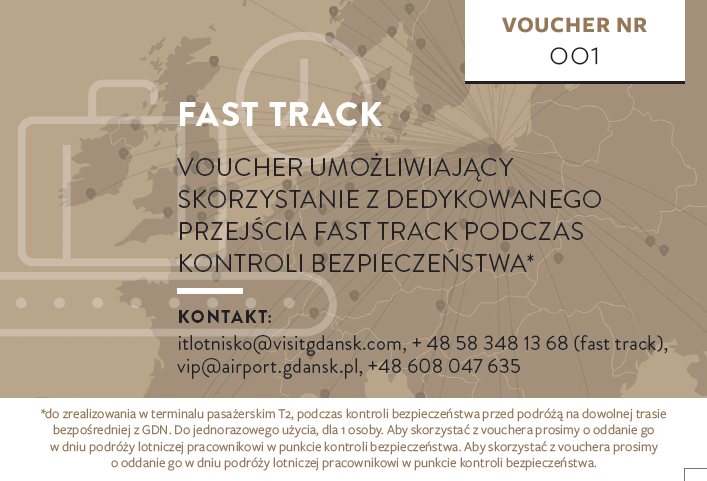 Port Lotniczy Gdańsk dla swoich pasażerów ma usługi umożliwiające komfortowe oczekiwanie na samolot oraz szybką ścieżkę przejścia przez kontrolę bezpieczeństwa. Już dziś możecie kupić specjalne vouchery dla siebie i bliskich.