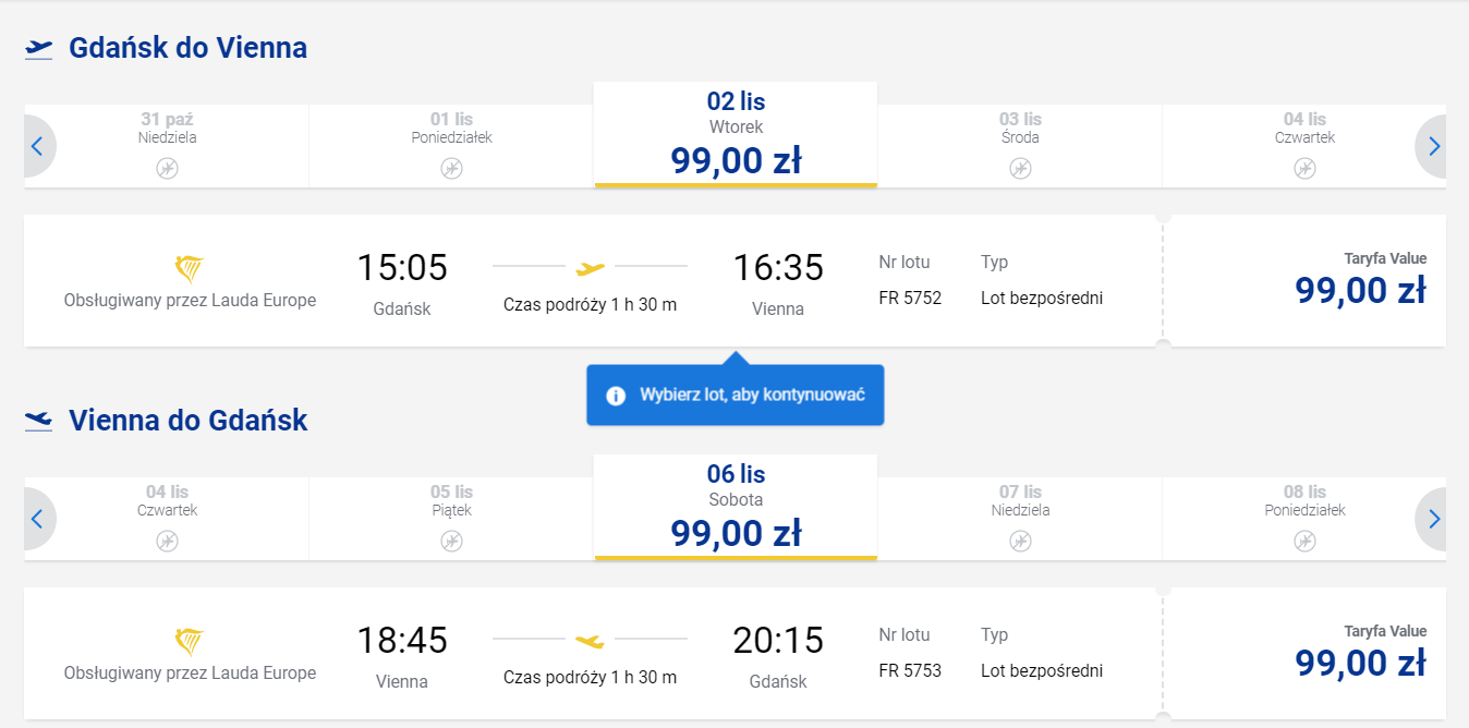 Pierwszy rejs z Gdańska do austriackiej stolicy wystartuje 2 listopada 2021 roku. Loty pomiędzy Trójmiastem a Wiedniem będą trwać godzinę i 30 minut. Bilety są już dostępne na ryanair.com.
