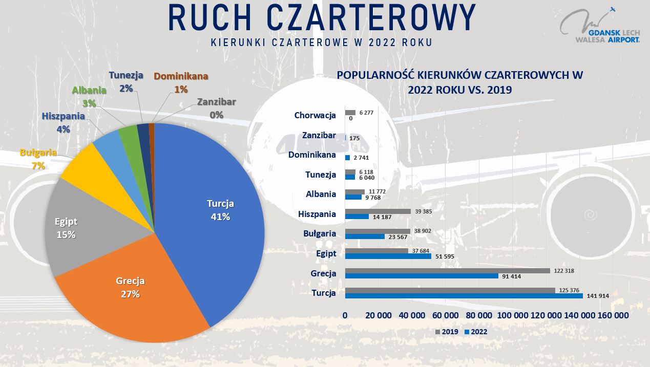 W lotach czarterowych największą popularnością cieszyły się Turcja, Grecja i Egipt.