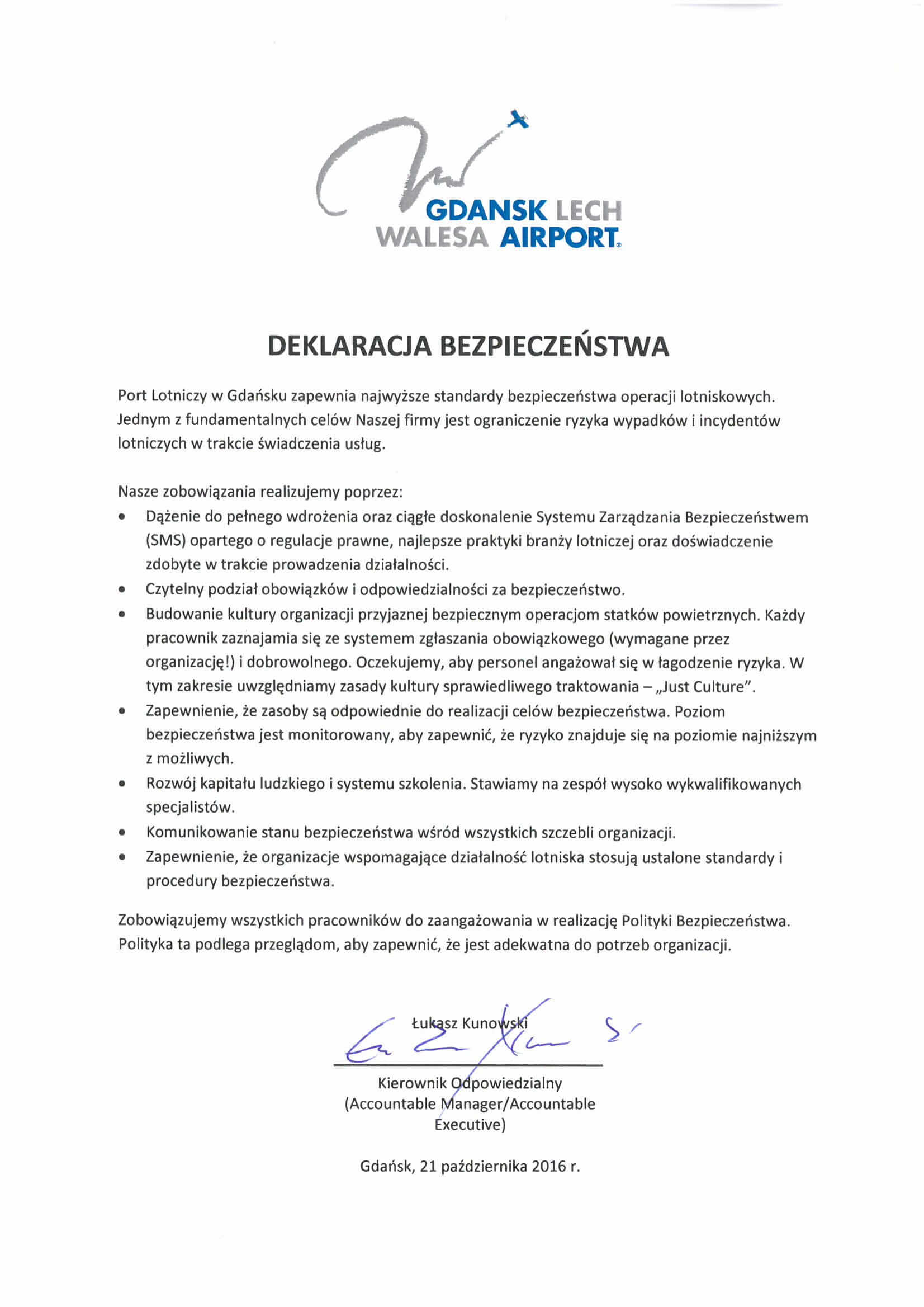 Deklaracja Bezpieczeństwa Portu Lotniczego Gdańsk im. Lecha Wałęsy